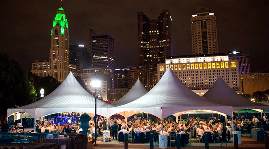 With an elegant stone courtyard, the columns of the historic Central High School façade, and an unparalleled view of downtown Columbus, English Plaza is perfect for large, outdoor gatherings.